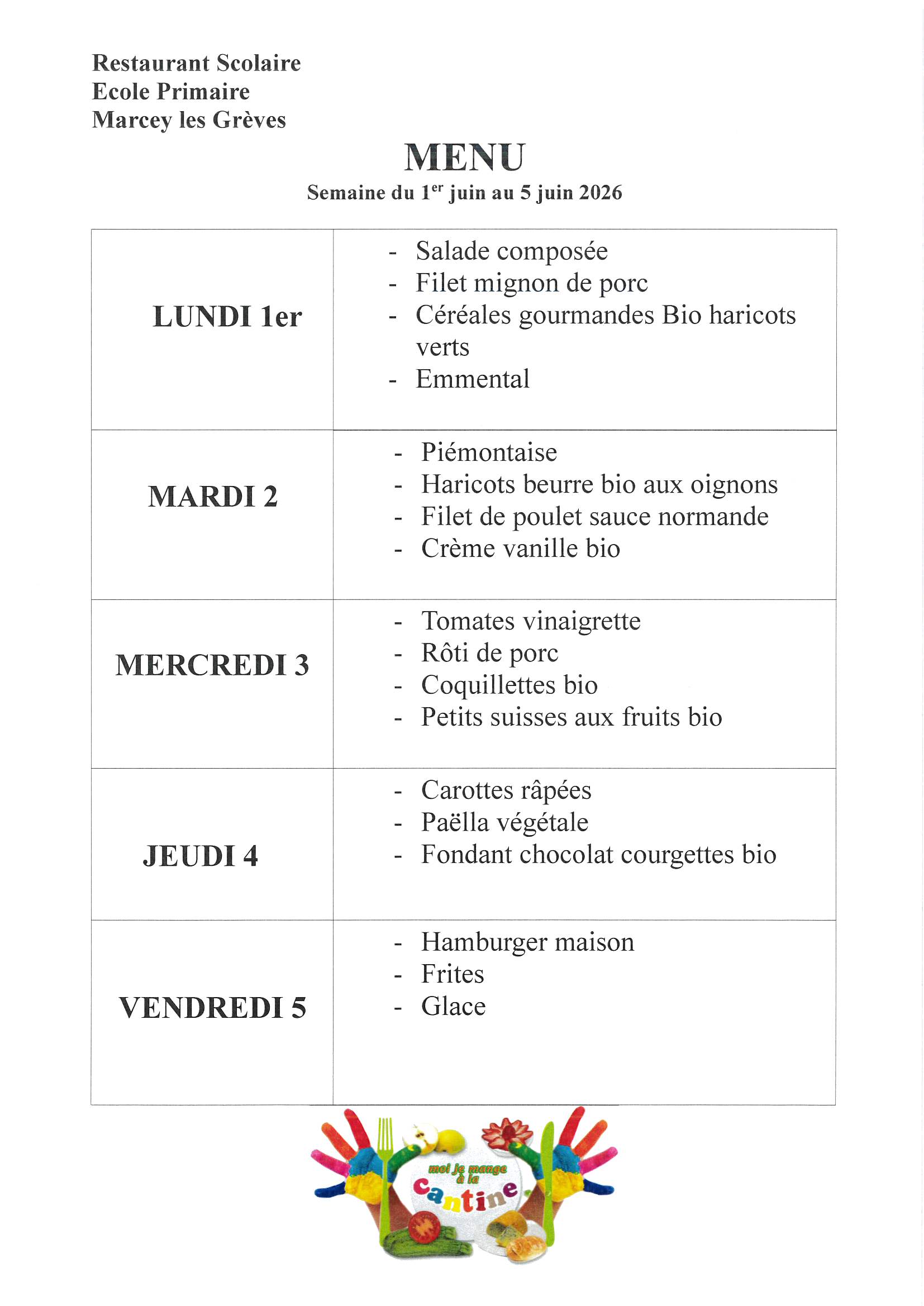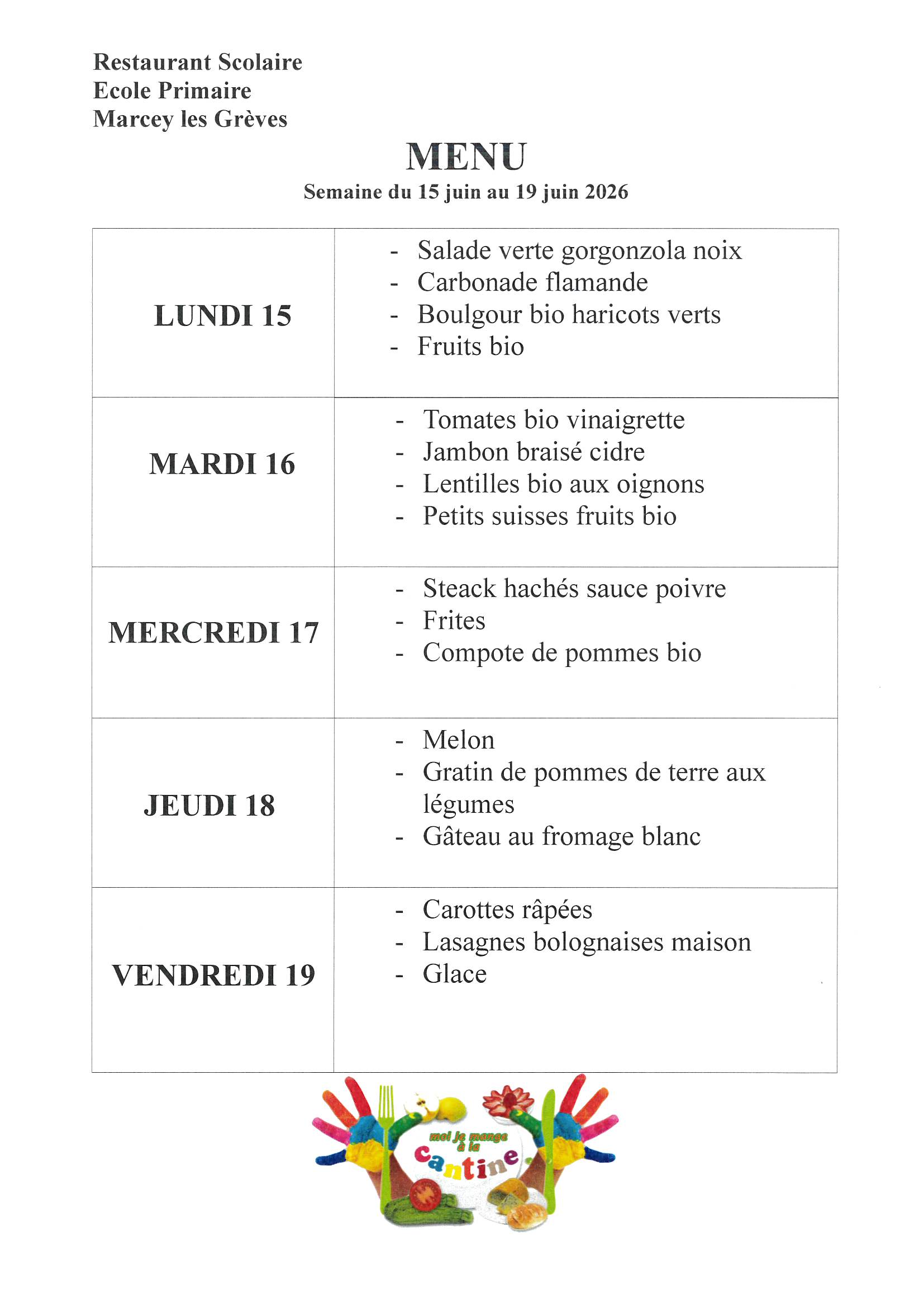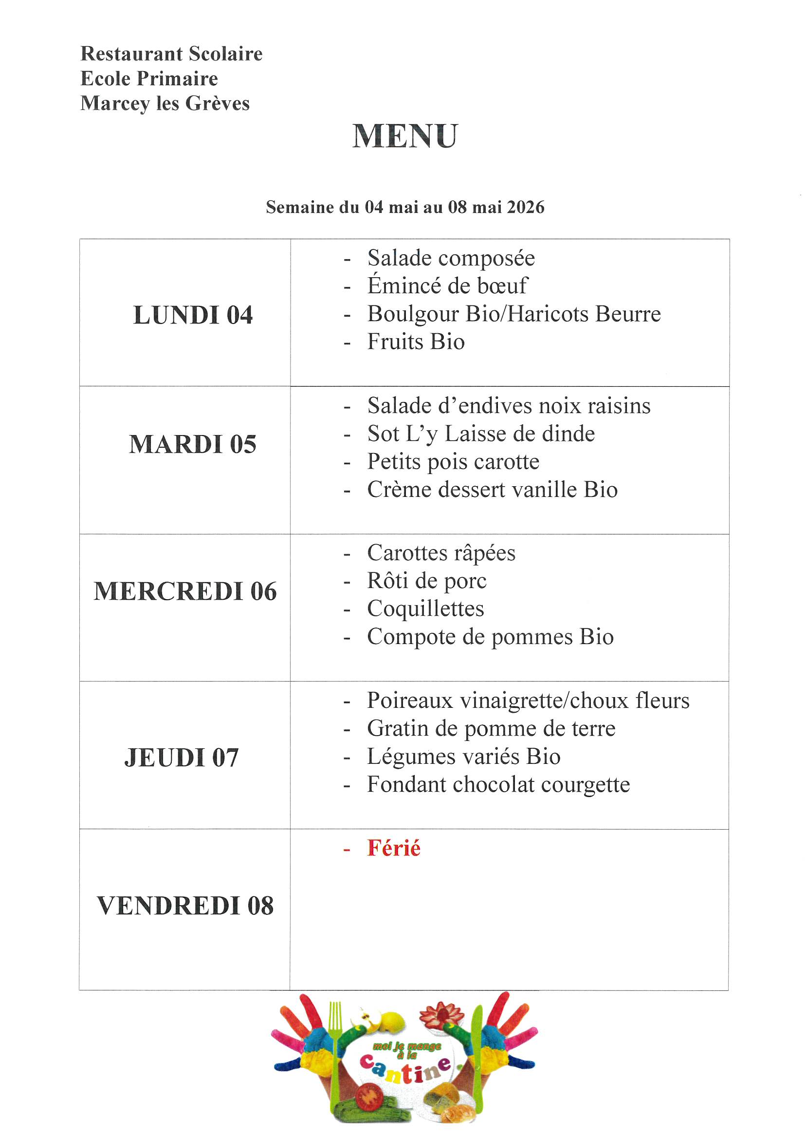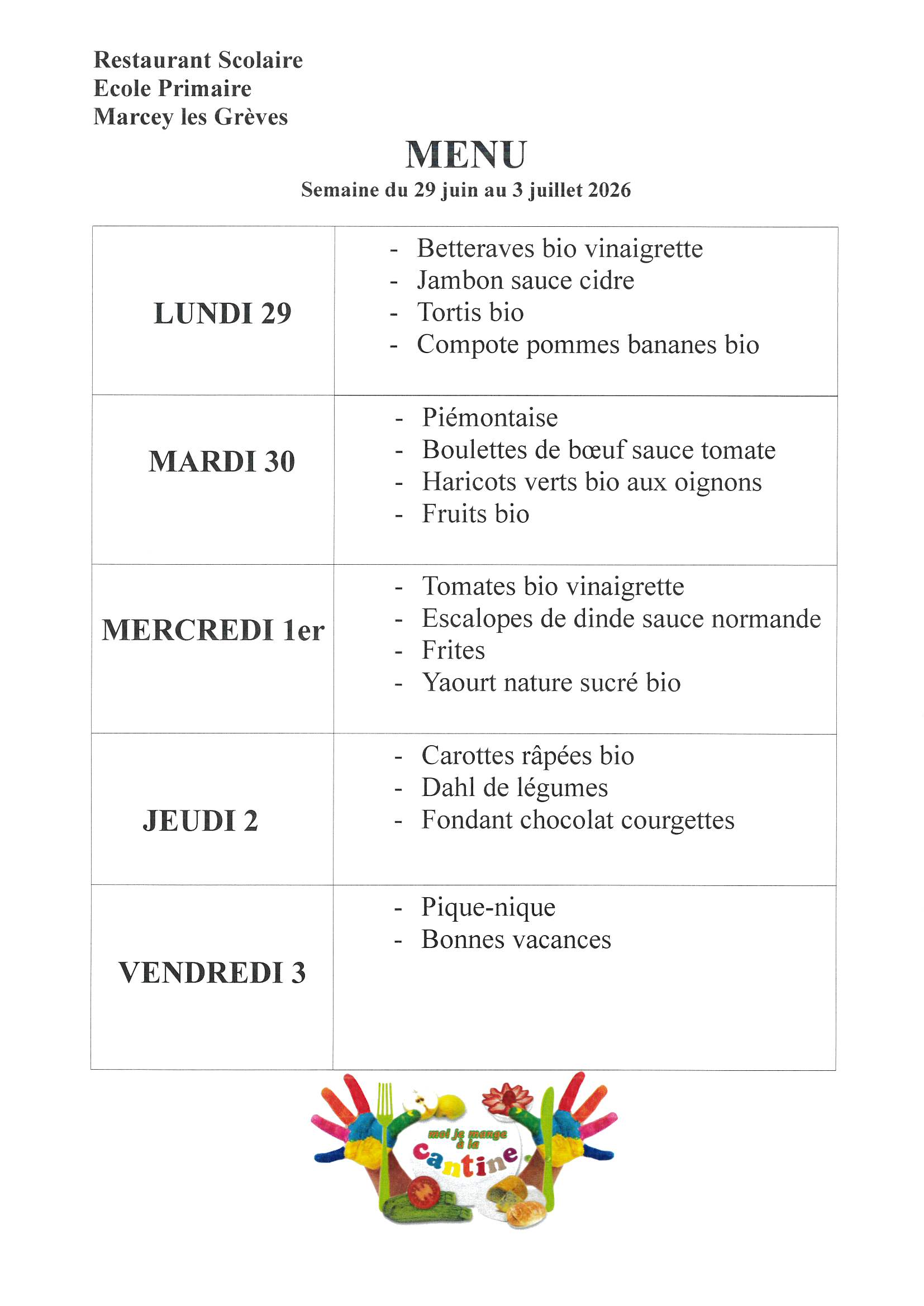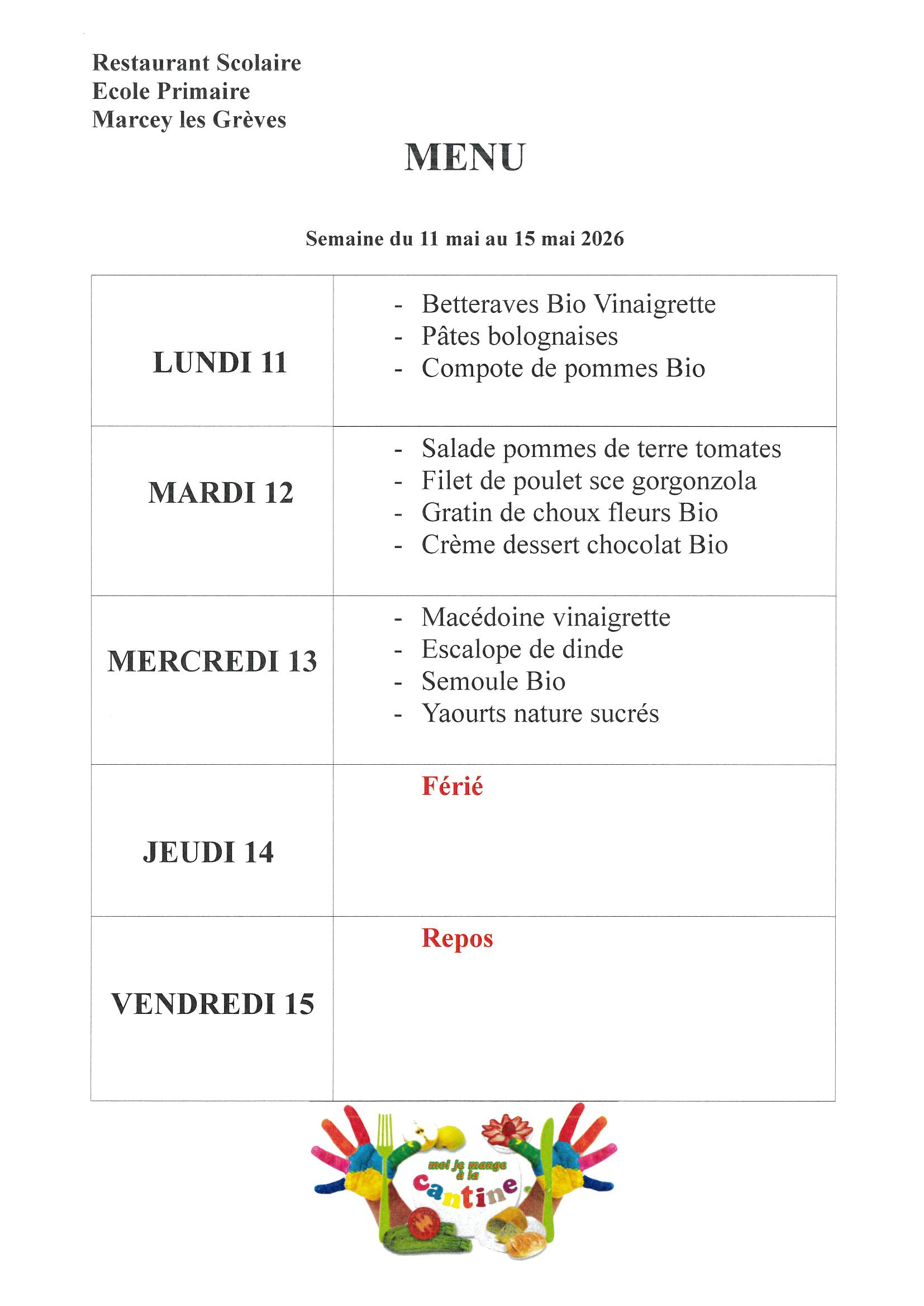Menus Cantine