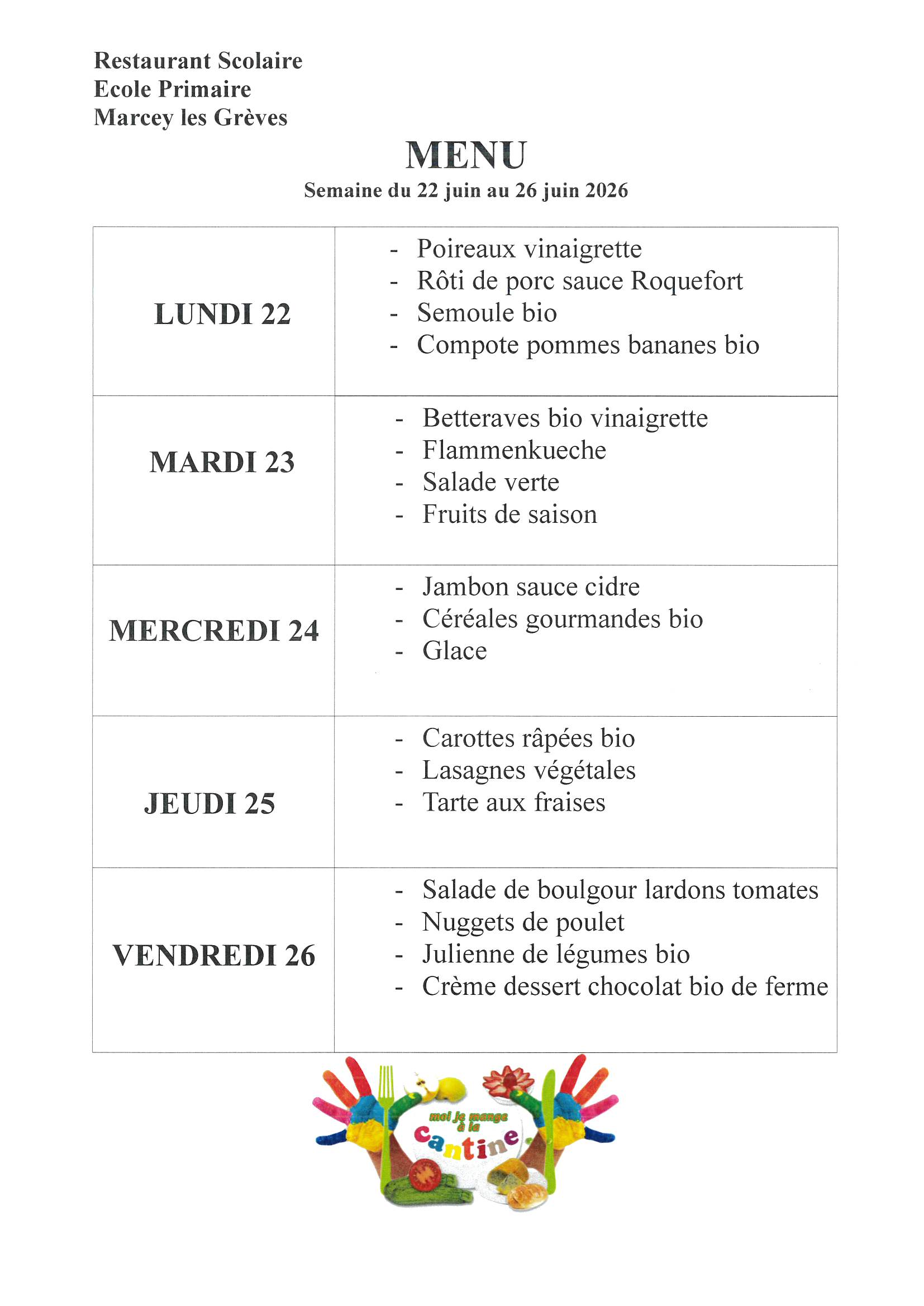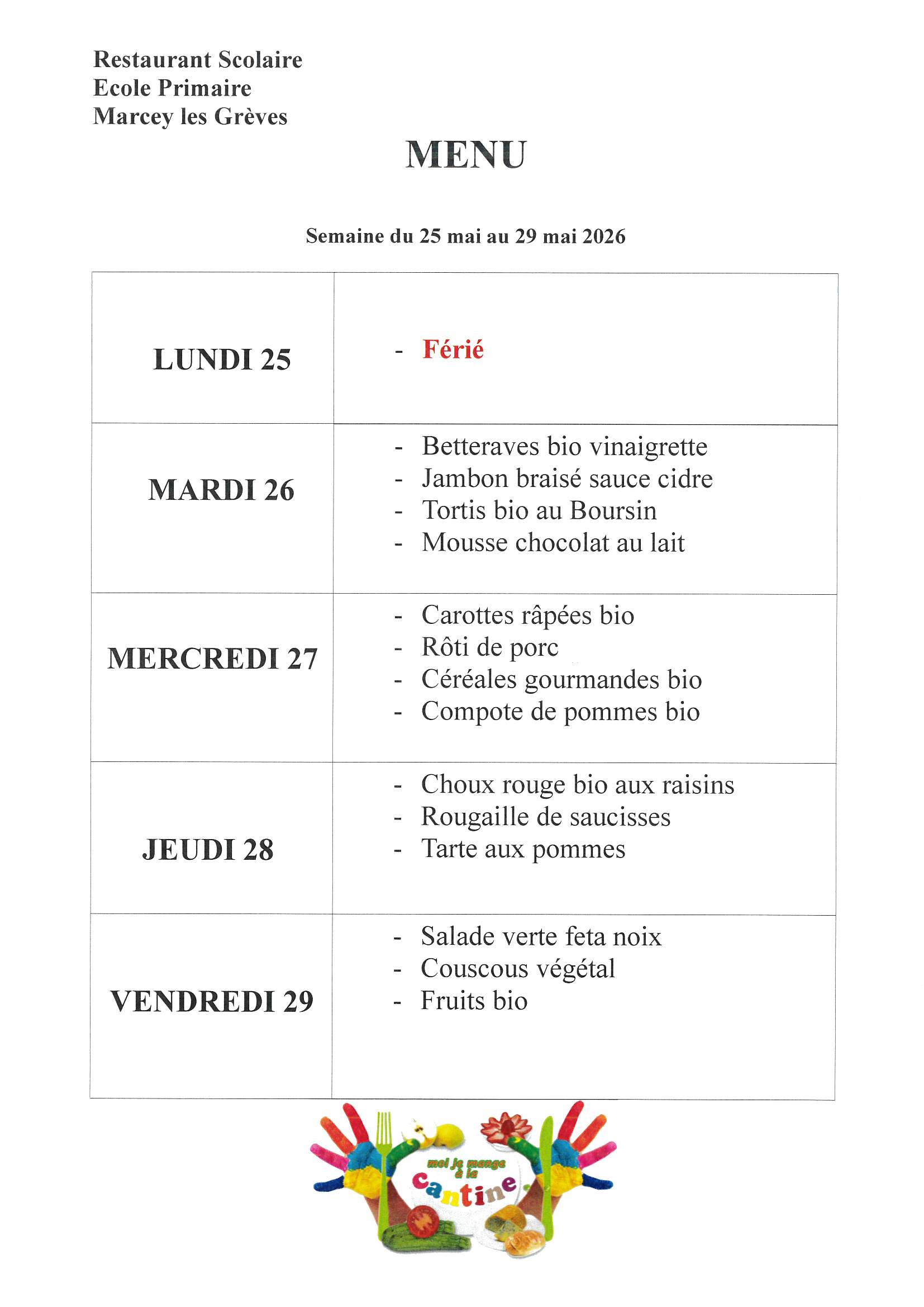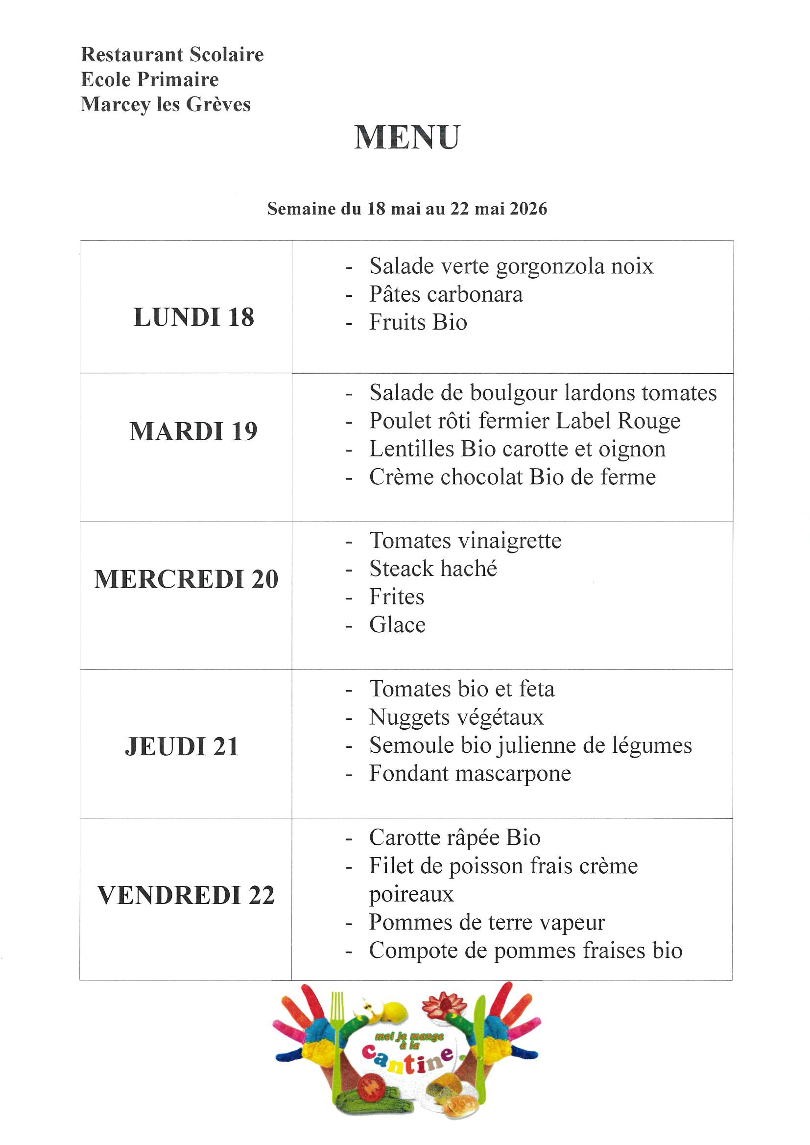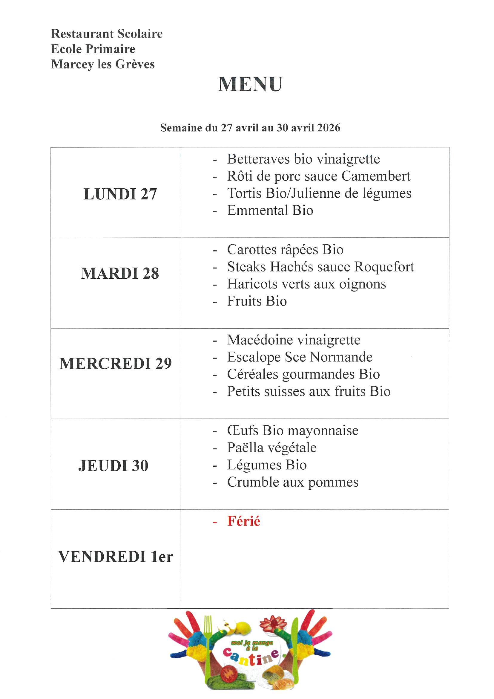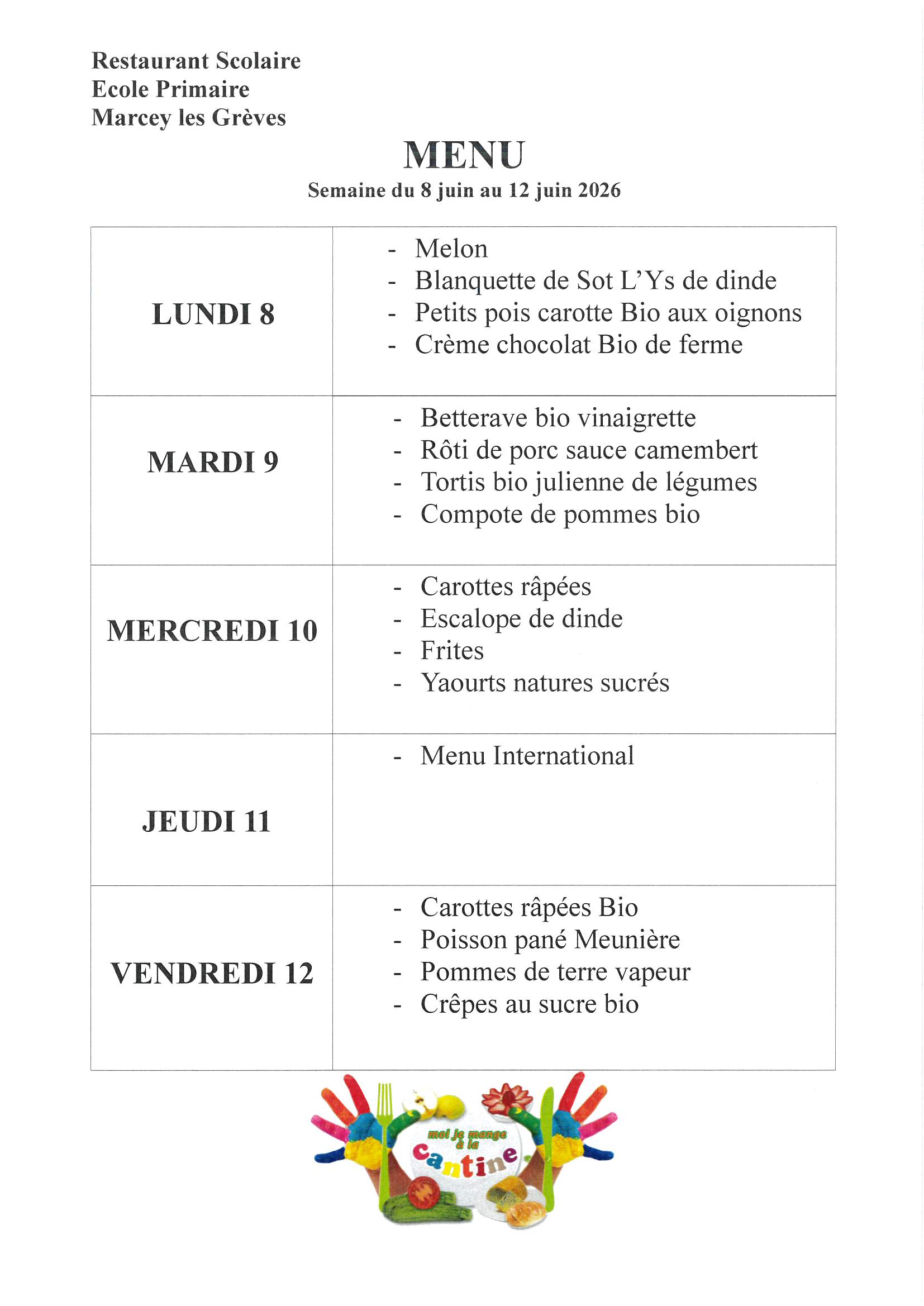 Menus Cantine